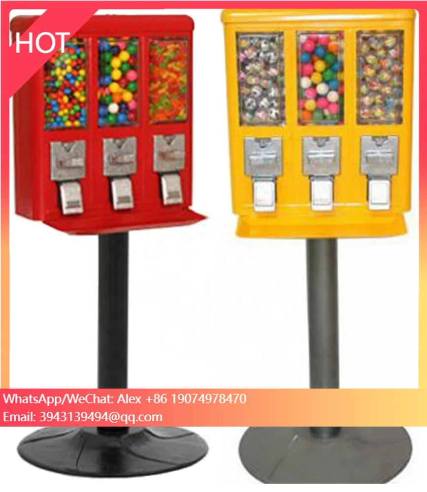 CV19 Mechanischer Verkaufsautomat, geeignet für Münzen verschiedener Länder, Süßigkeitenautomat, 3 Köpfe, Rot/Gelb, Direktversand ab Werk