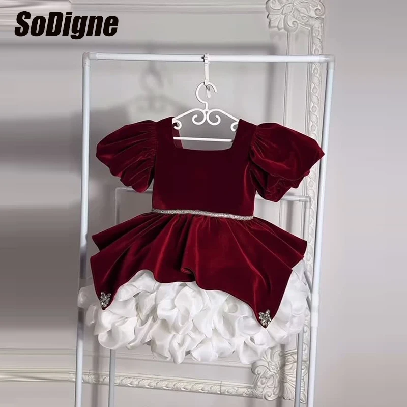 Sevintage süße rosa Baby-Blumenkleider mit Schleife hinten, Geburtstagskind-Partykleid, Hochzeitskleider für Kinder, Ropa de Niña 2026, individuell gestaltet
