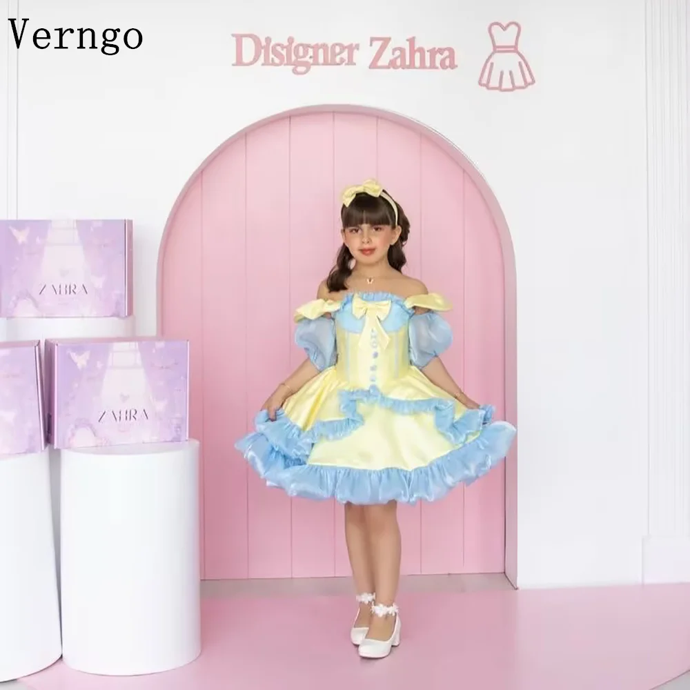 Elfenbeinfarbenes Blumenmädchenkleid mit Schleifenriemen, Mini-Brauthochzeitskleid für Kinder, Ballkleid, 1. Kommunion, individuelles Vestidos de Noiva