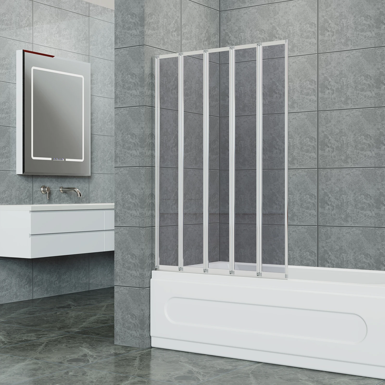 【Lifeideas】 4/5-fache Duschwand aus grauem Glas mit 4 mm gehärtetem Glas, wasserdichter Badezimmerteiler für nasse/trockene Zonen