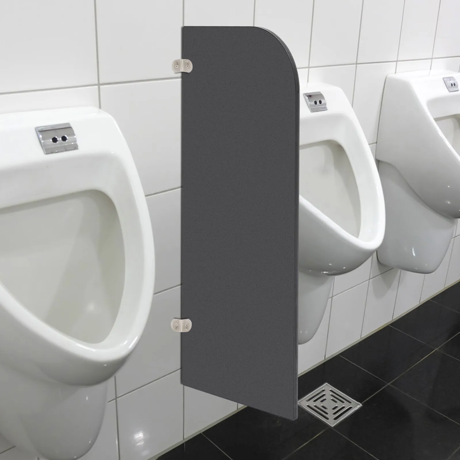 Moderne schwarze Urinal-Trennwand, wandmontierte Urinalabtrennung für Herren, abgerundete Urinal-Trennwand