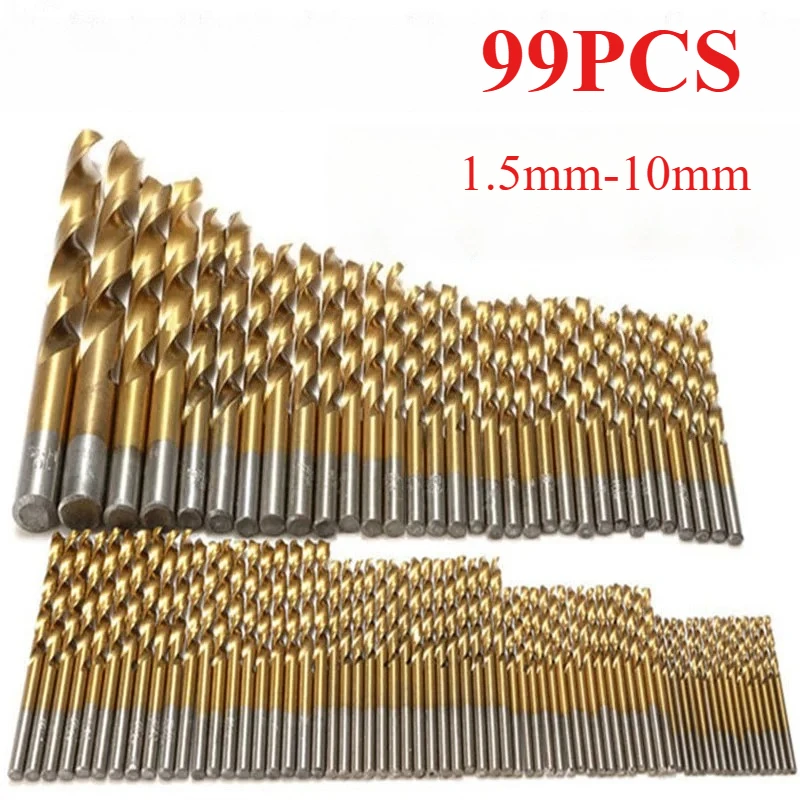 99PCS 1,5-10mm Titan Beschichtet Spiralbohrer Set HSS Metrische Bits Multifunktions Metall Bohrer Power Tools Kit