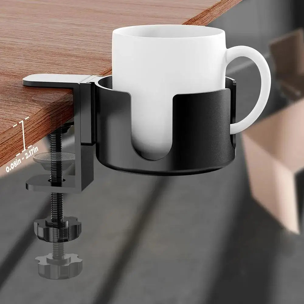 2-in-1-Schreibtisch-Getränkehalter ohne Bohren, verstellbar, verbesserter Arm-Klemmständer, um 360 Grad drehbare Tischkantenklemme, Anti-Fall-Getränkehalter