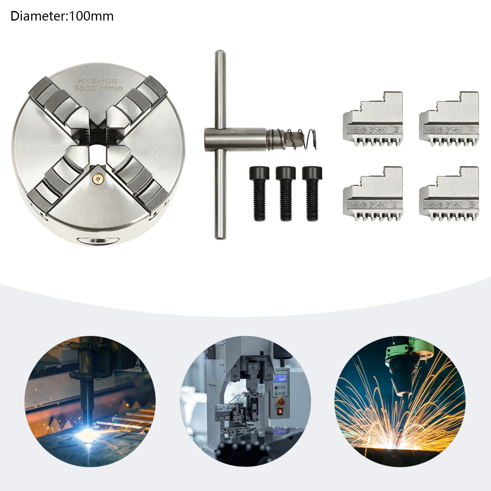 4-Backen-Selbstzentrier-Drehfutter 100mm Spannbereich 30-90mm für CNC-Fräs- und Bohrmaschinen Metallbearbeitungszubehör
