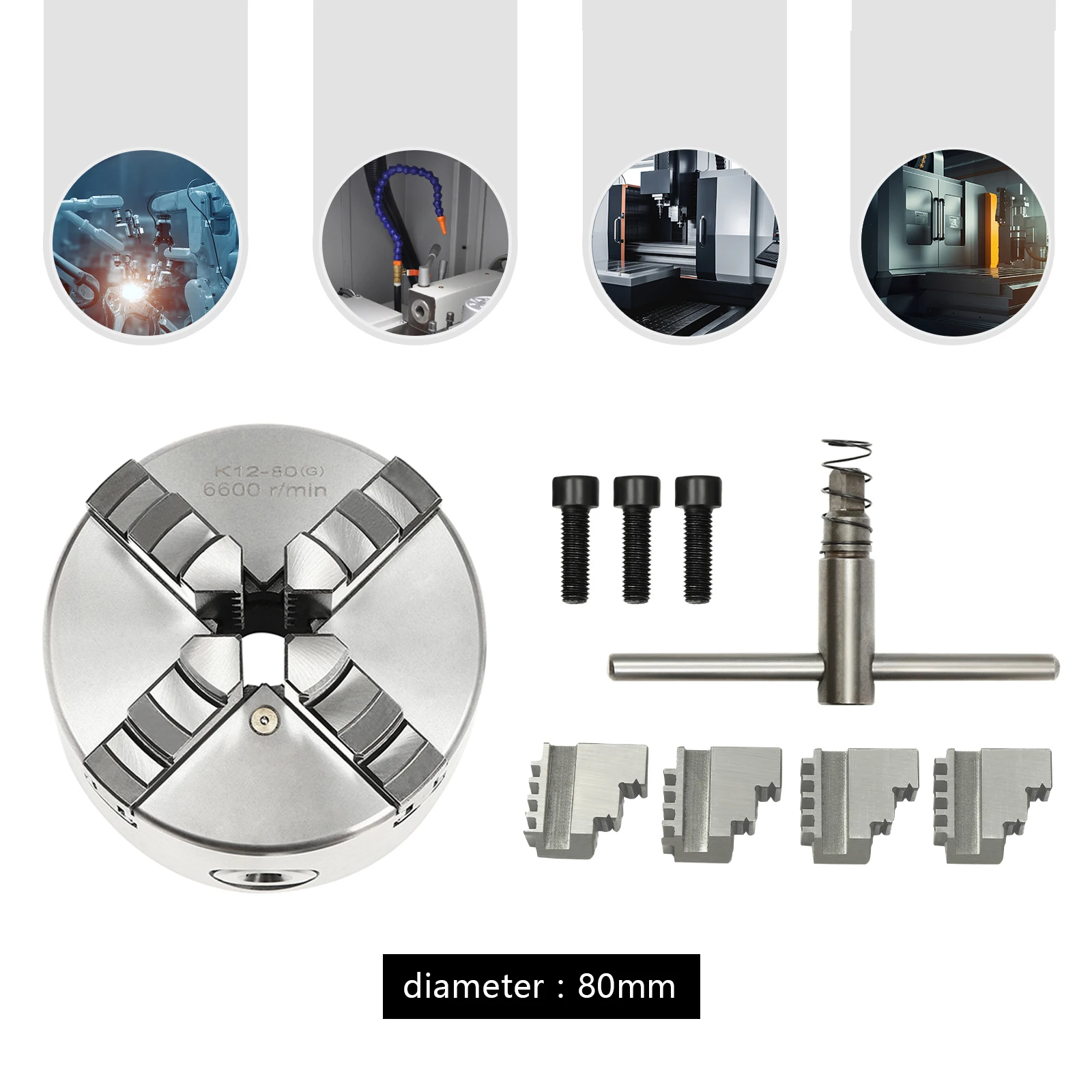 80-mm-Selbstzentrier-Drehfuttersatz, 3-Backen-Selbstzentrier-Drehfutter, 4000 U/min, für allgemeine Werkzeugmaschinen, CNC-Werkzeugmaschinen