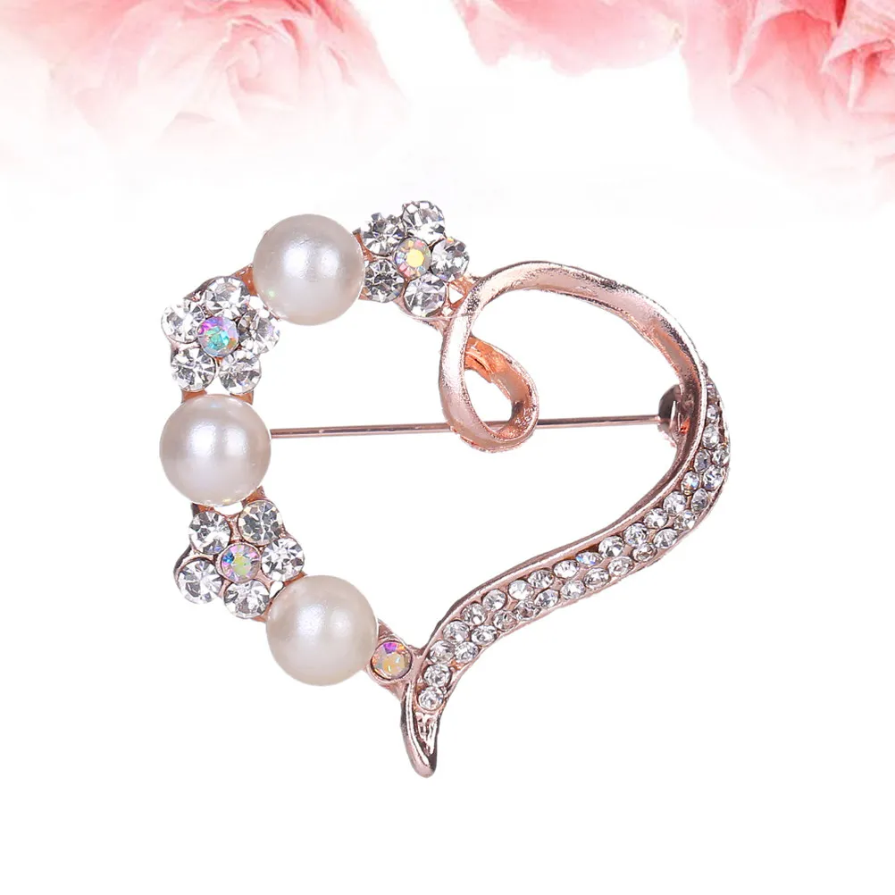 Pfirsichherz-Brosche aus Roségold-Legierung mit Strass für Damen, Kleid, Revers, Schmuck, Party, Abschlussball, Dekoration, Stoffbrosche