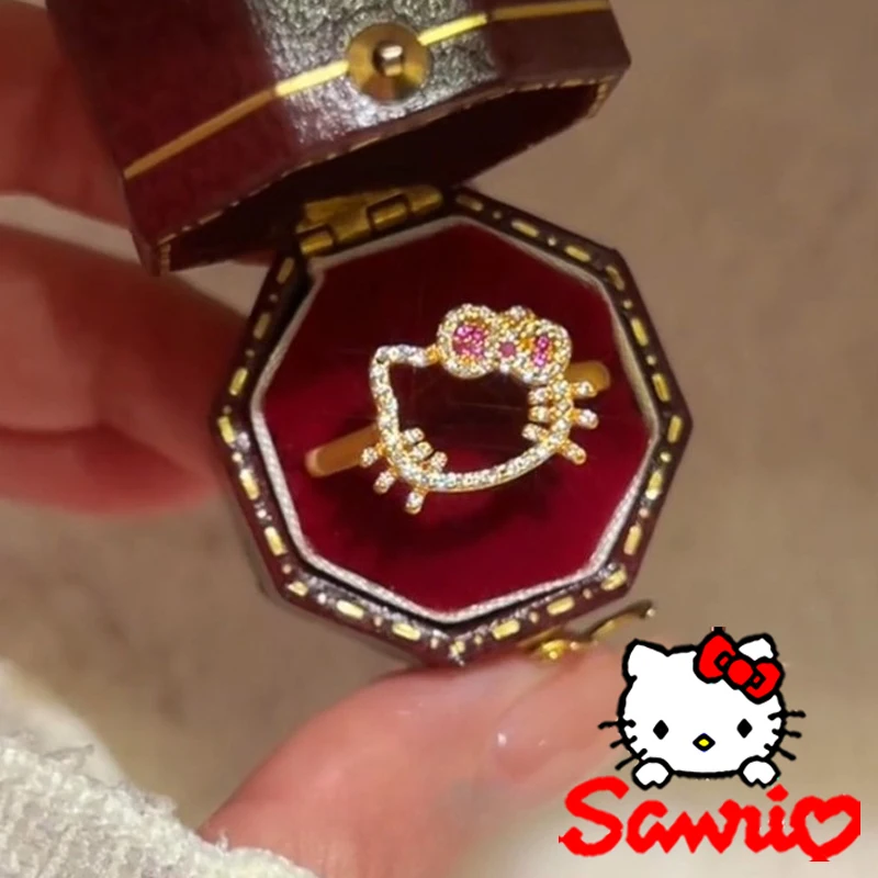 Sanrio Hello Kitty Ringe Cartoon Mode Frau Diamant Verzierte Ring Süße Mädchen Täglich Tragen Anime Peripheriegeräte Ornament Geschenke