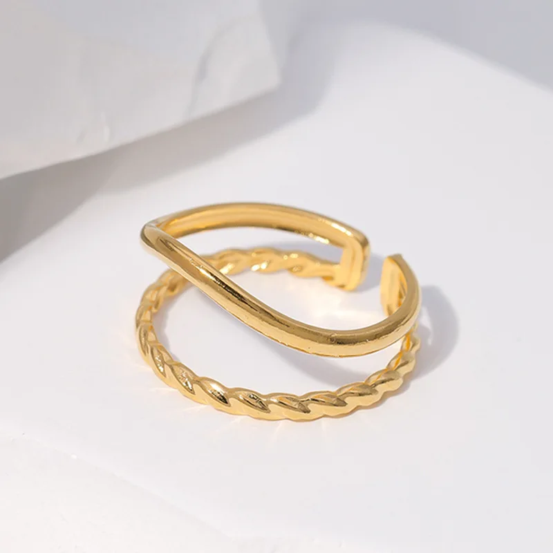 Edelstahl Doppels ch ichten geometrische Ringe für Frauen Mädchen Gold Farbe Mode offene Ringe Hochzeits feier Schmuck Geschenke neu