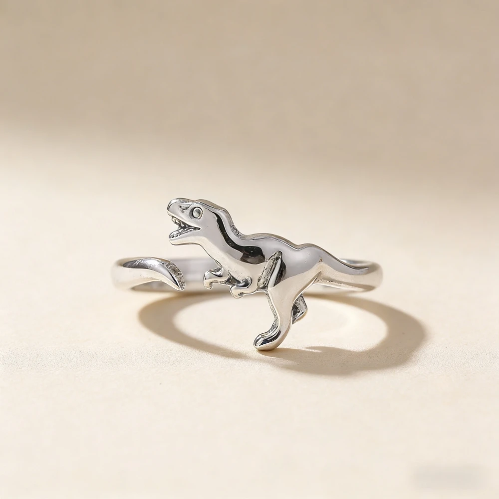 925 Silber Plattierter Jurassic Dinosaurier Ring mit Verstellbarem Niedlichem Tiermotiv, Geeignet für Paare Tägliches Tragen, Party Schmuck Geschenk