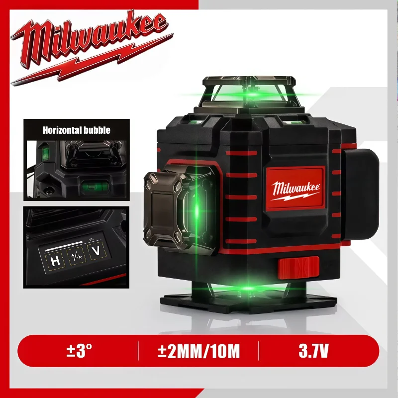 Milwaukee selbstnivellierender grüner Laser, 4 Seiten, 360° ° Grad vertikaler 4,2 V 3–4D-Kreuzlaser mit 16 Linien und Batterie