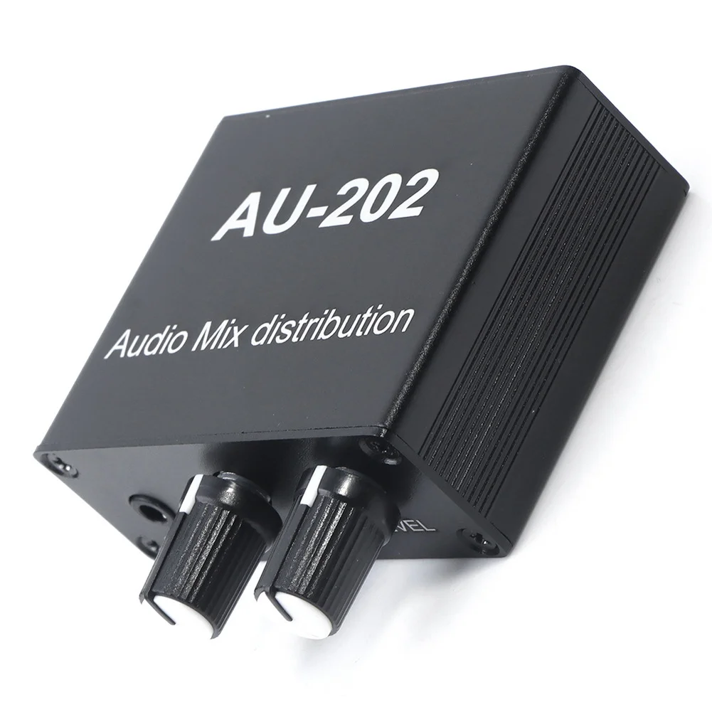 Für den Studiogebrauch, schwarzer Stereo-Mixer, Stereo-Audiomixer für Kopfhörer, Audio-Verteiler, Dual-Eingang, zwei Kopfhörerausgänge