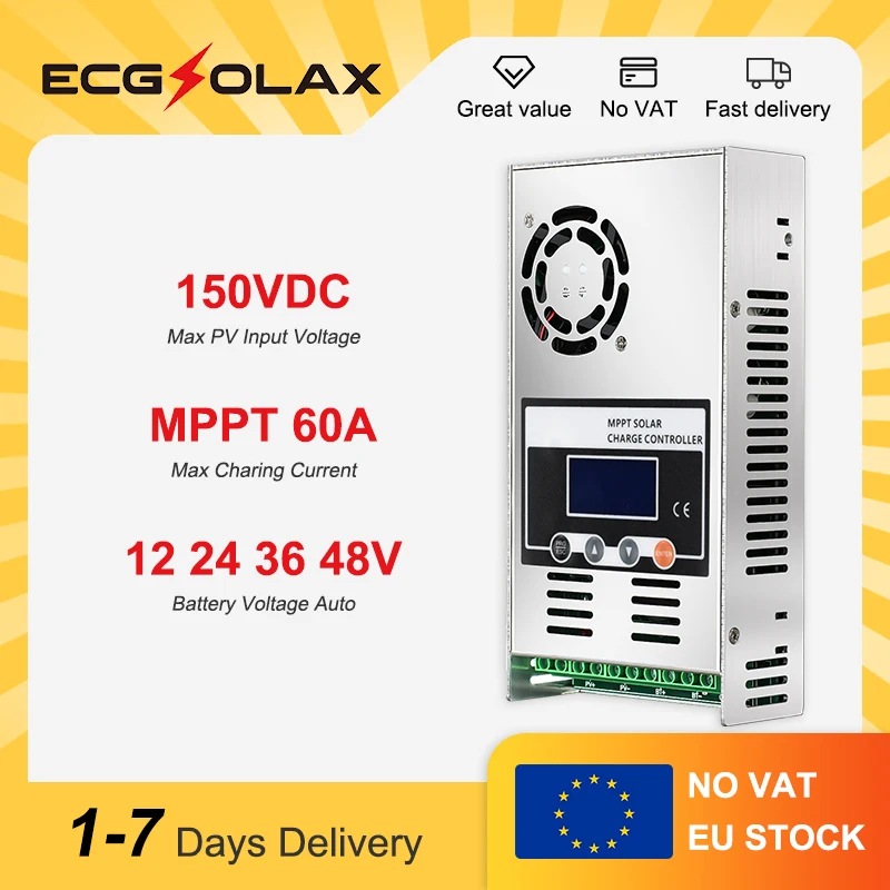 ECGSOLAX 60A Solarladeregler 12V 24V 36V 48V Batterieladeregler 60A Solarregler Max PV 150 LCD-Display