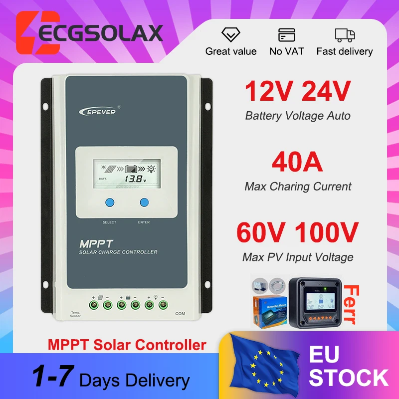 EPEVER Tracer AN Serie 40A MPPT Solar-Laderegler mit LCD-Display, Solarregler für 12V 24V Batterien, Automatisch, Hohe Effizienz
