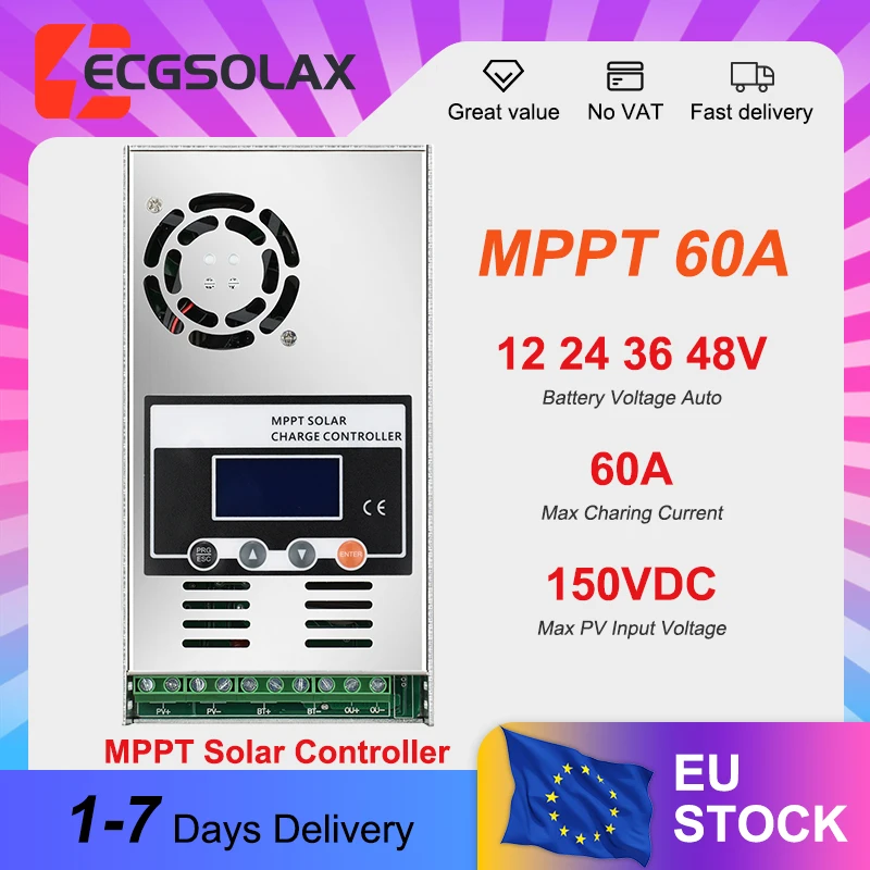 ECGSOLAX Solar-Laderegler 60A MPPT Max PV 150VDC Solar-Laderegler 12V 24V 36V 48V Solar-Batterieladeregler