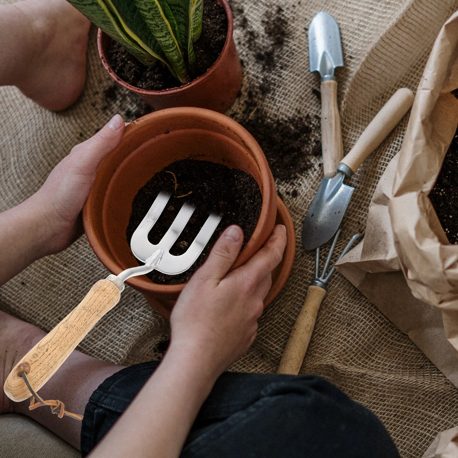 Robuster Hand-Unkrautstecher mit Gabelklinge aus Stahl und Holzgriff, Reduziert Handgelenkbelastung, Gartenwerkzeug zur Effektiven Unkrautentfernung, Schwarz