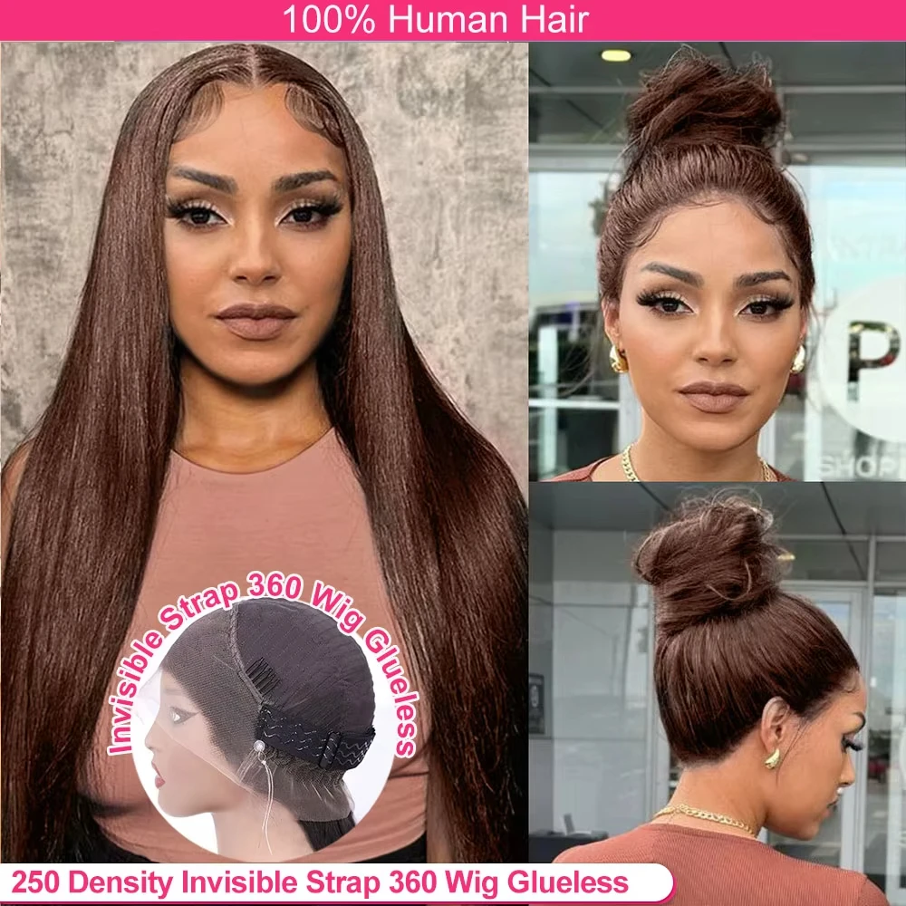 Versteckte unsichtbare Riemen 360-Grad-Vollspitze-Perücke, gerade schokoladenbraune Lace-Front-Perücken, Echthaar 360-Grad-Frontal-Perücke