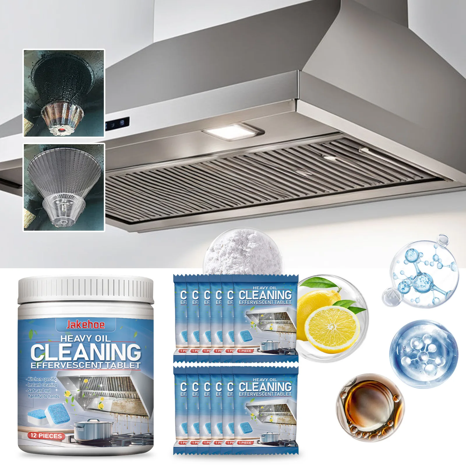 12 Küchenreinigungstabletten – entfernt Fett aus Herdplatten und Dunstabzugshauben, Brausewirkung, sicher für mehrere Oberflächen