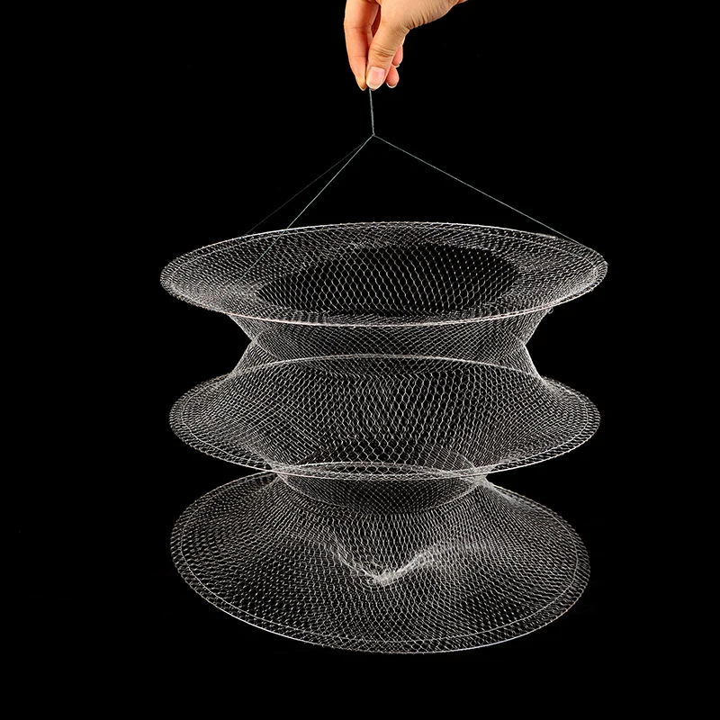 2 schichten Tragbare Fischernetz Fisch Garnelen Mesh Käfig Cast Net Angeln Falle Netzwerk Faltbare Fischernetz Tackle Durchmesser 32 CM