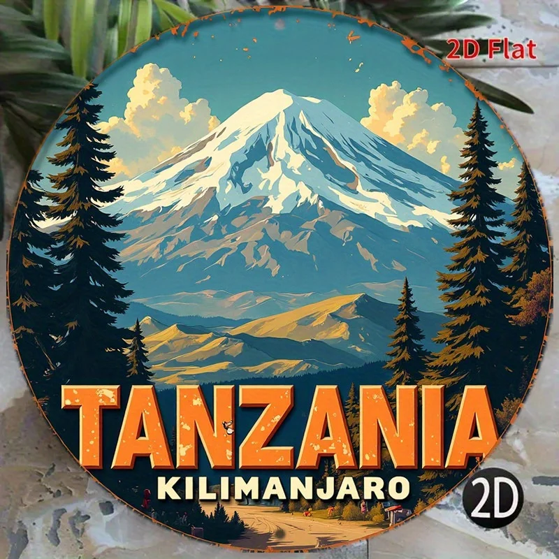 1 Stück Tansania Kilimanjaro Berg Wandkunst - 20 cm Rundes Afrika-Themen Aluminium Metallschild mit Ikonischem Gipfel