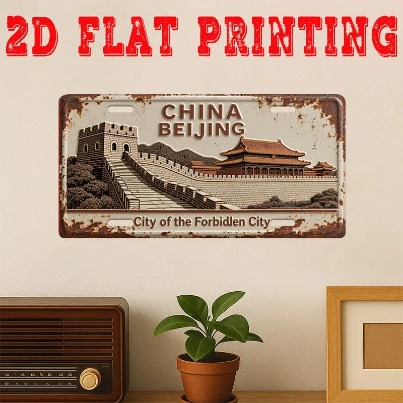 2D flach, 1 Stück Vintage chinesisches Metall-Wandkunstschild – tolle Wand und Verbotene Stadt Retro-Peking-Karte, großes Kulturerbe-Plakette