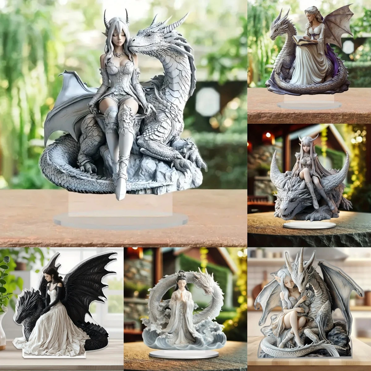 2D flache Acryl-Tischdekoration mit Feen- und weißen Drachen, Zuhause, Büro, Café, Zimmer, Studio, Vitrine, Desktop-Ornament, Geschenkset-Schild