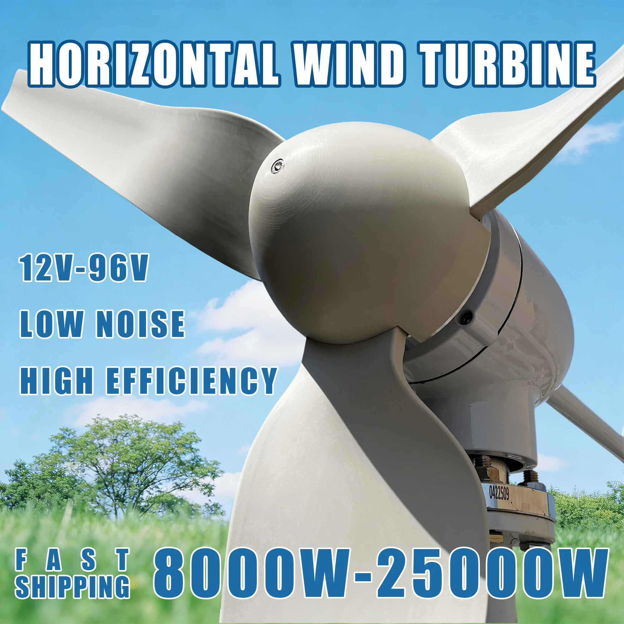Horizontalachsen-Windgenerator mit Geringer Lautstärke 20000W 25000W Windturbine 12V 24V 48V Komplettes System-Kit Niedrige Anlaufwindgeschwindigkeit für Zuhause