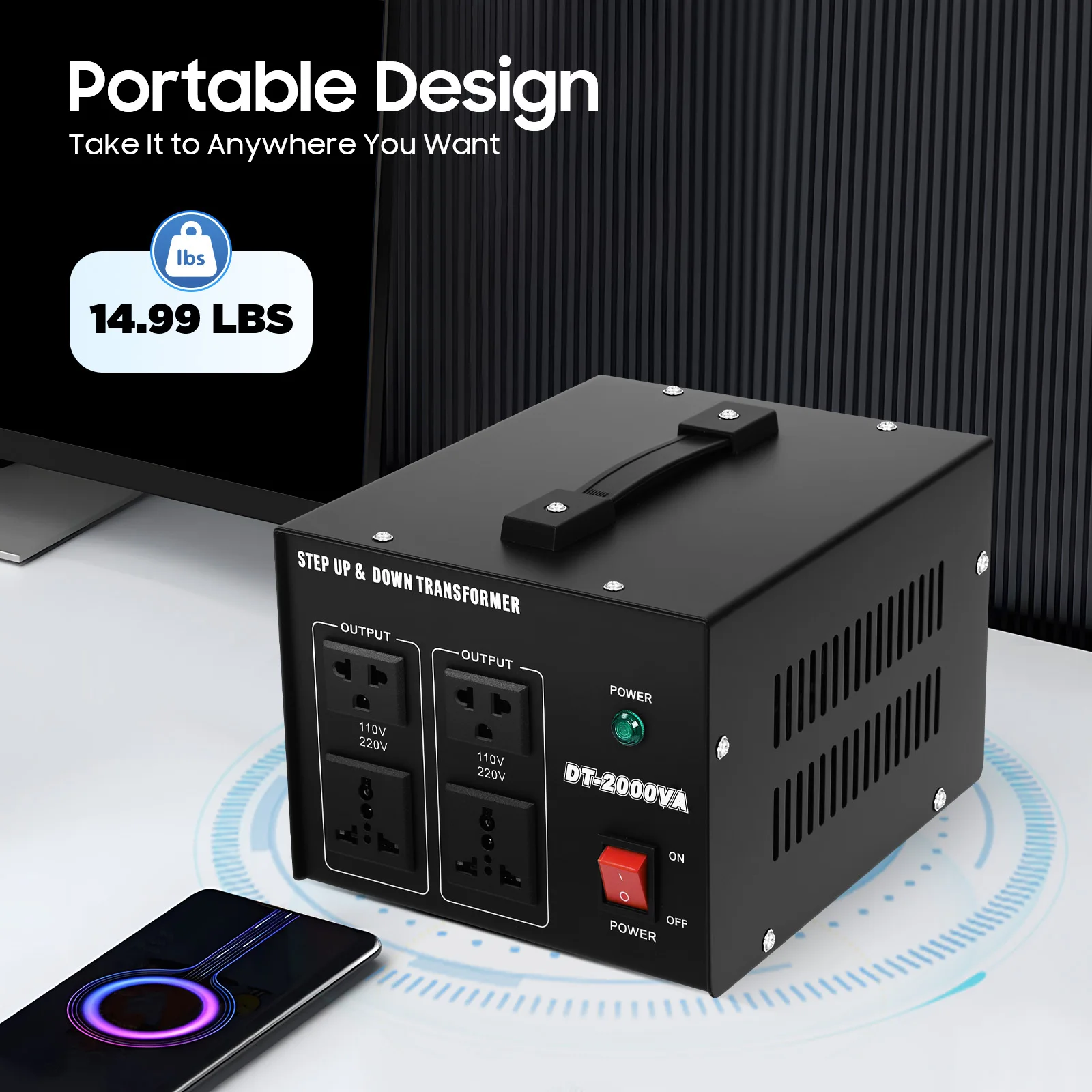 2000W Spannungswandler Transformator Aufwärts- & Abwärtswandler 110V auf 220V, 220V auf 110V mit 4 Steckdosen Sicherheitsschutz für Reisen und Zuhause