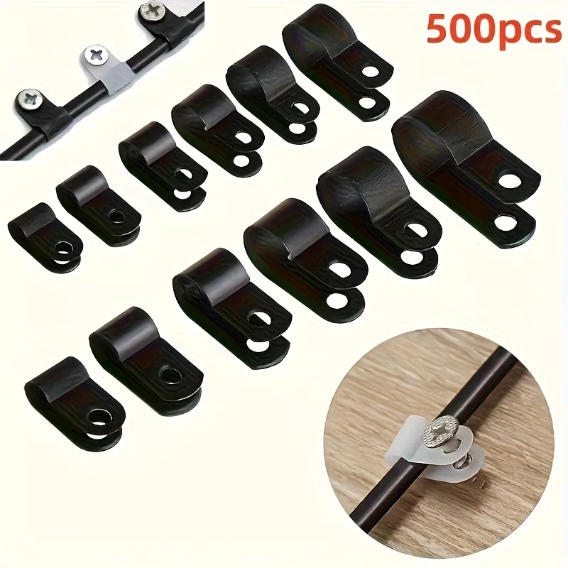 500PCS R-Typ Nylon Kabel Klemme Rohr Montage Fix Verdrahtung Schlauch Befestigungen Langlebige Isolierung Elektrische Armaturen Hohe qualität