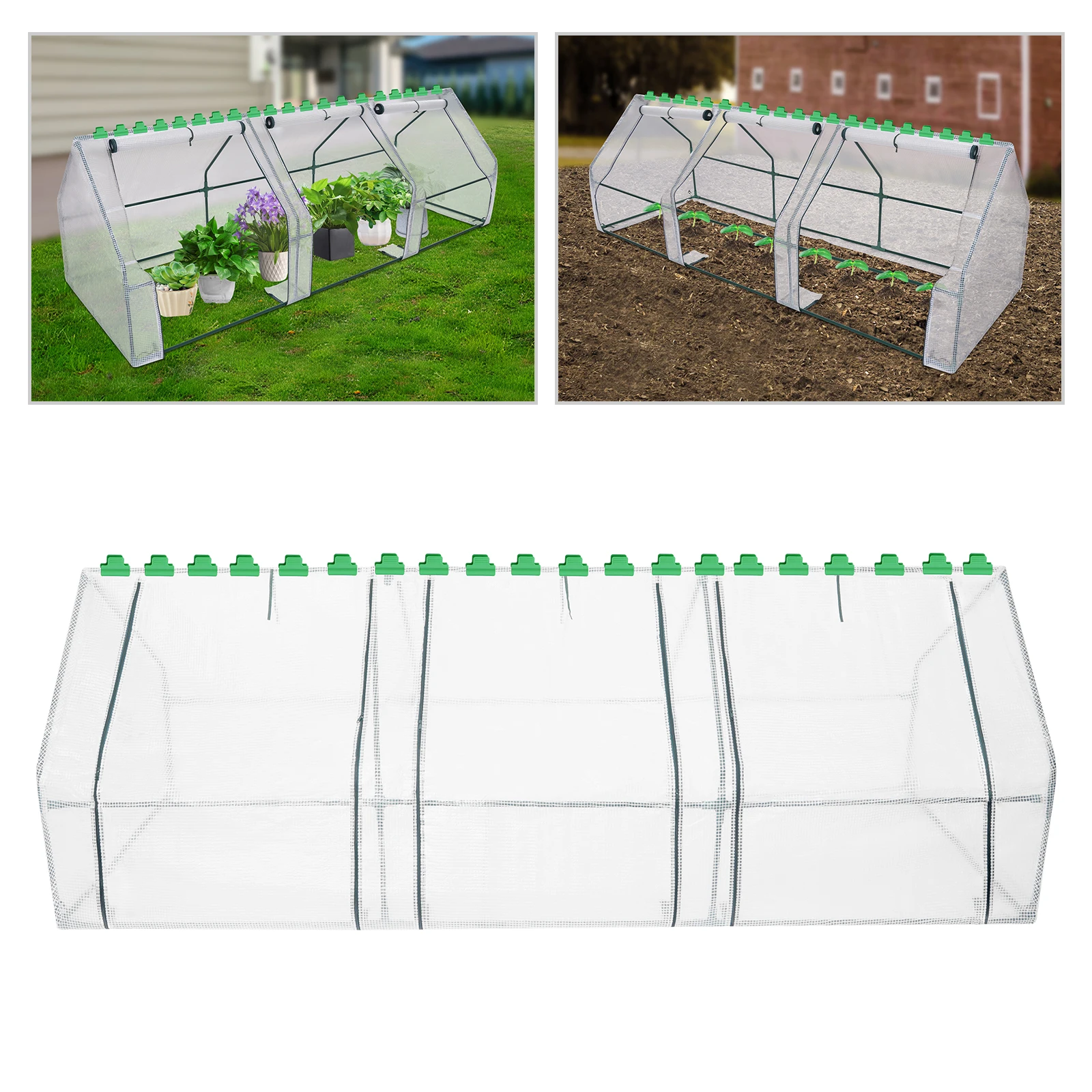 Gartengewächshäuser für den Außenbereich, kalter Frost, winddichter Gewächshaus-Gewächshaus-Abdeckung, Gartenarbeit mit aufrollbaren Fenstern und Reißverschluss