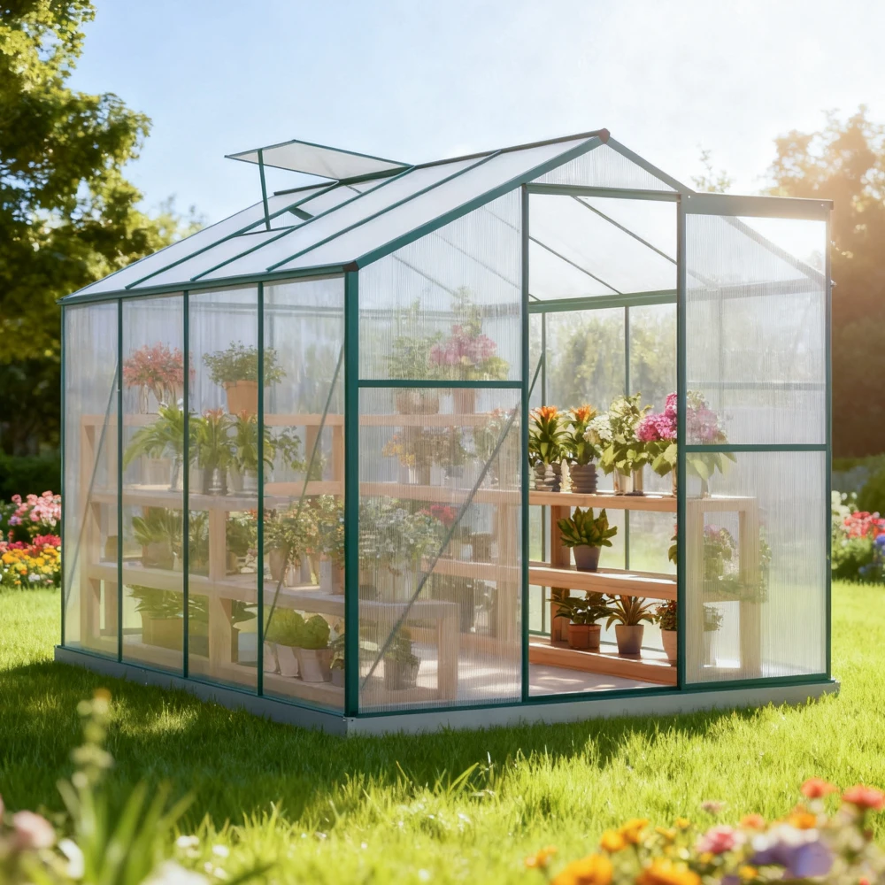Gewächshaus aus Aluminium mit Grundierung 4,75 M2 – 190 × 253 cm inkl., Oberlicht und Schiebetür, Gartengewächshaus, Pflanzenhaus