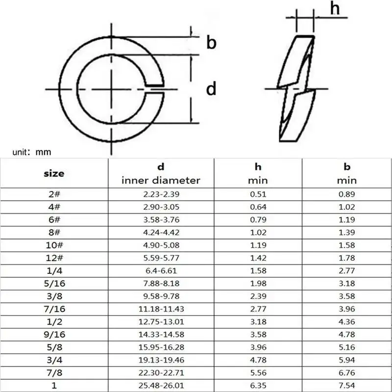 10-100 Stück 2 # 4 # 6 # 8 # 10 # 12 # 1/4 5/16 3/8 7/16 1/2 304 A2 Edelstahl US UK Standard Federscheibe Geteilte Sicherungsdichtung Elastische Dichtung