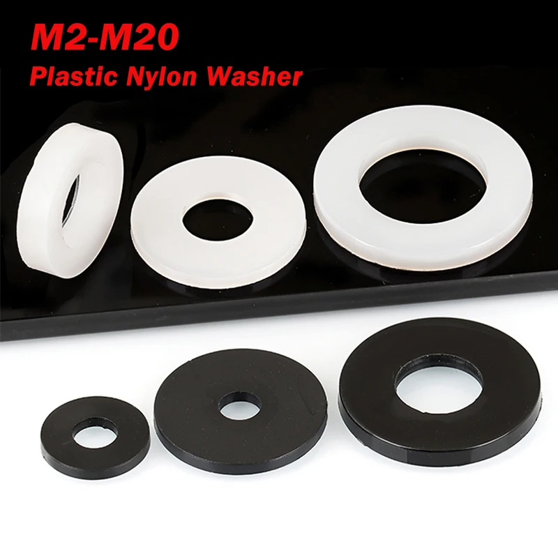 10–200 Stück schwarz/weiße Kunststoff-Nylon-Unterlegscheibe M2 M2,5 M3 M4 M5 M6 M8 M10 M12 M14 M16 M18 M20 flache Abstandshalter-Unterlegscheibendichtungen Dichtung O-Ring