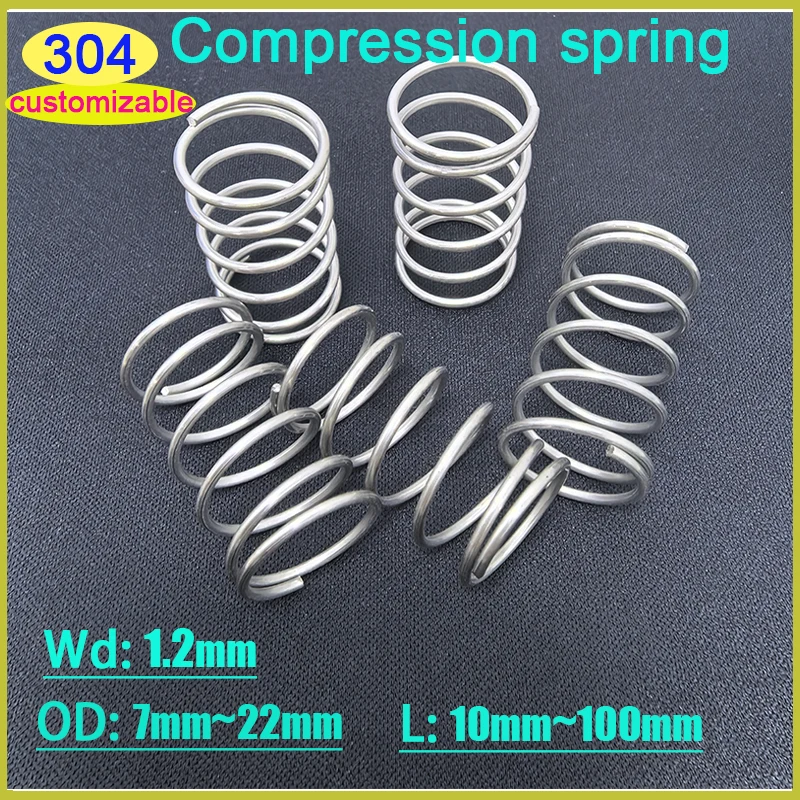 Drahtdurchmesser: 1,2 mm, 10 Stück, Mikro-Kompressionsfeder aus Edelstahl 304, Außendurchmesser: 7–22 mm, L: 10–100 mm, anpassbar