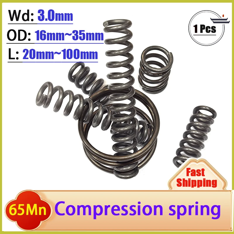 65Mn-Draht, Durchmesser 3,0 mm, starke Feder aus Federstahl, Druck- und Kompressionsfeder, Außendurchmesser: 16–35 mm, Länge: 20–100 mm, anpassbar