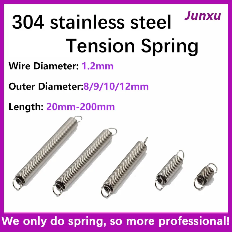 5 teile/los 1,2mm 304 Edelstahl O Haken Spannung Zylindroid Helical Pullback Verlängerung Spannung Schraubenfeder OD8-12 lengh20-200