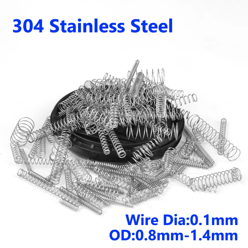 Mikro-Druckfeder aus Edelstahl 304, kleine Rückkehr, Druckfeder, Drahtdurchmesser: 0,1 mm, Außendurchmesser: 0,8 mm–1,4 mm, Länge: 5 mm–25 mm