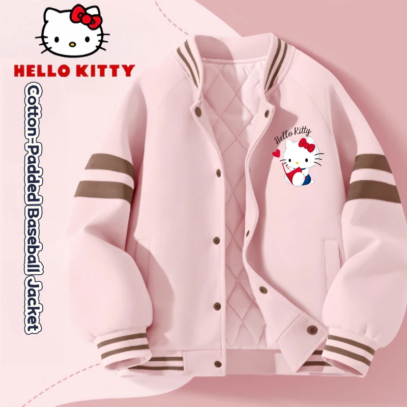 Hello Kitty Kinderkleidung, Preppy-Style Baseballjacke für Mädchen, Niedliches Muster, Stylische Bequeme Oberbekleidung, Baseballjacke