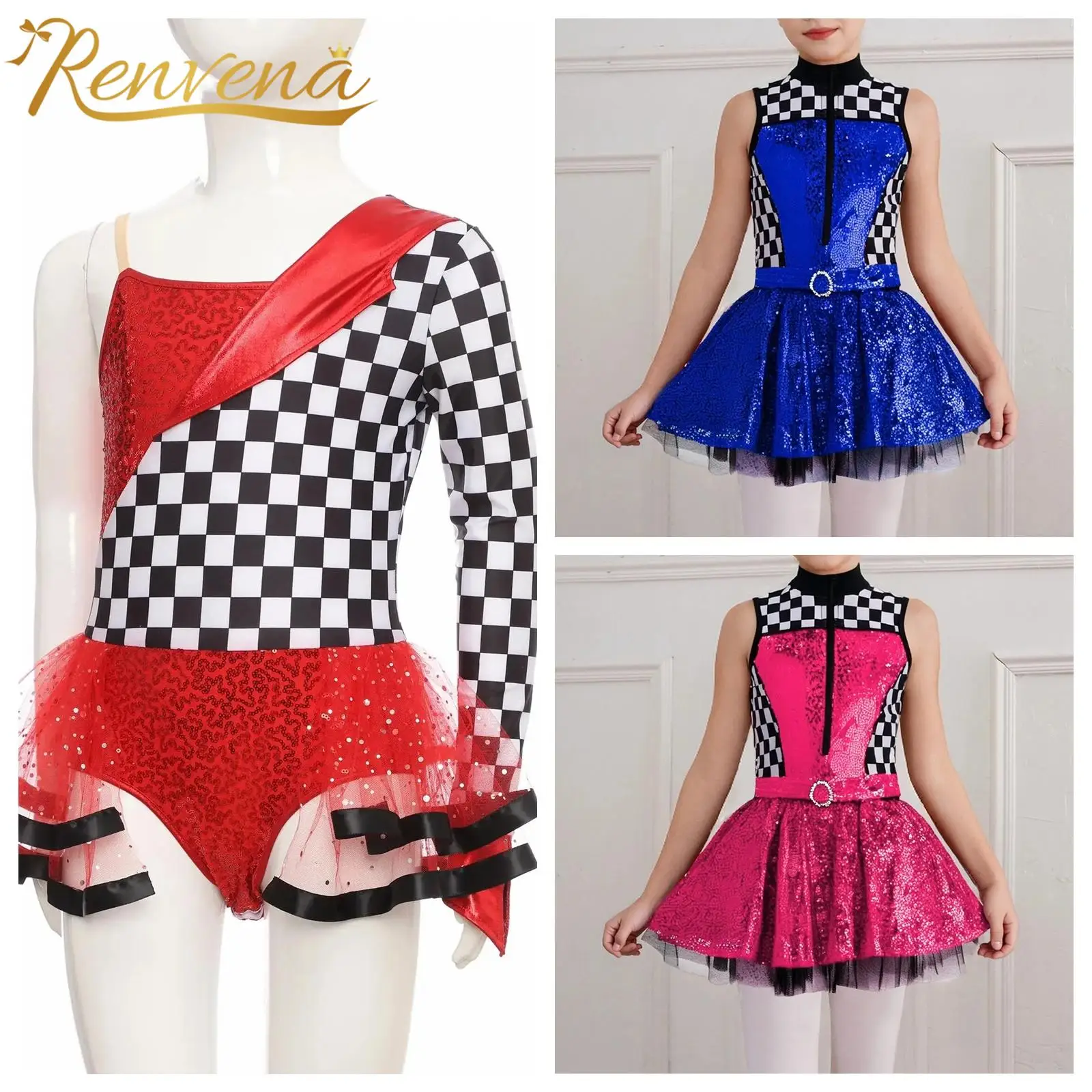 Mädchen Rennfahrer Kostüm Kinder Karneval Halloween Dress Up Rollenspiel Outfit Racer Kleid Pailletten Patchwork Ärmelloses Kleid