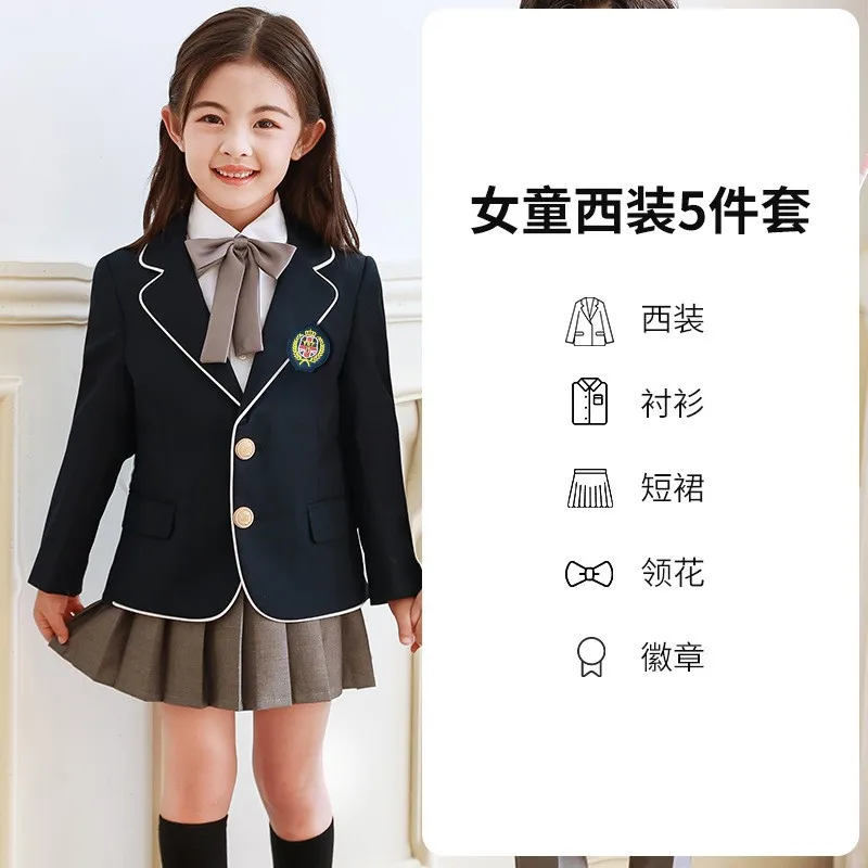Neues Schuluniform-Set für Kinder und Schüler Jungen Mädchen Schulkleidung Aufführungs-Set Kinder Blazer Hosen/Röcke Outfit