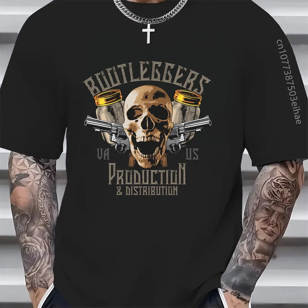 Herren-T-Shirt mit Totenkopfmuster aus Baumwolle, lockerem Rundhalsausschnitt, kurzen Ärmeln, atmungsaktivem und weichem Stoff, trendigem und lässigem Stil