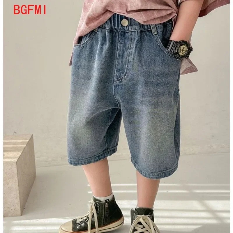Koreanische Kinder Junge Lose Gerade Casual Jeans Shorts Kind Blau Denim Shorts 4-14Y Junior Böden Sommer Kleidung für Teen Jungen