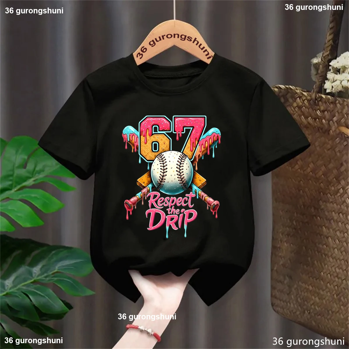Ice Cream Baseball 67 Meme Respect The Drip Bedrucktes T-Shirt Mädchen/Jungen Kawaii Lustige Kinderkleidung Soild Casual T-Shirt Tops