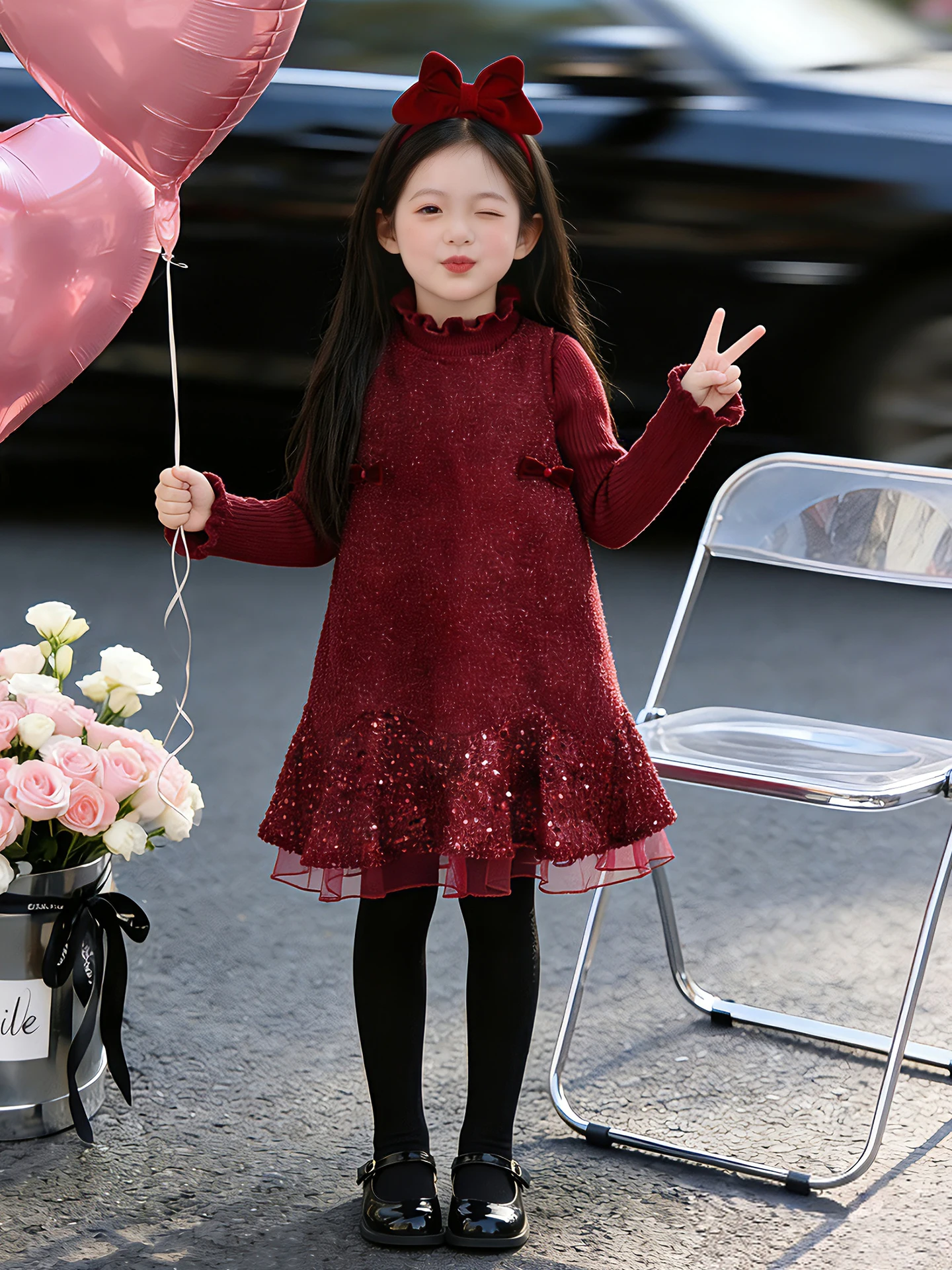 Atemberaubendes Princ Winter Dr für Mädchen Schönes Neujahrsoutfit Rot Kleines Mädchen Dr Faionable Weiches Material Long Sve