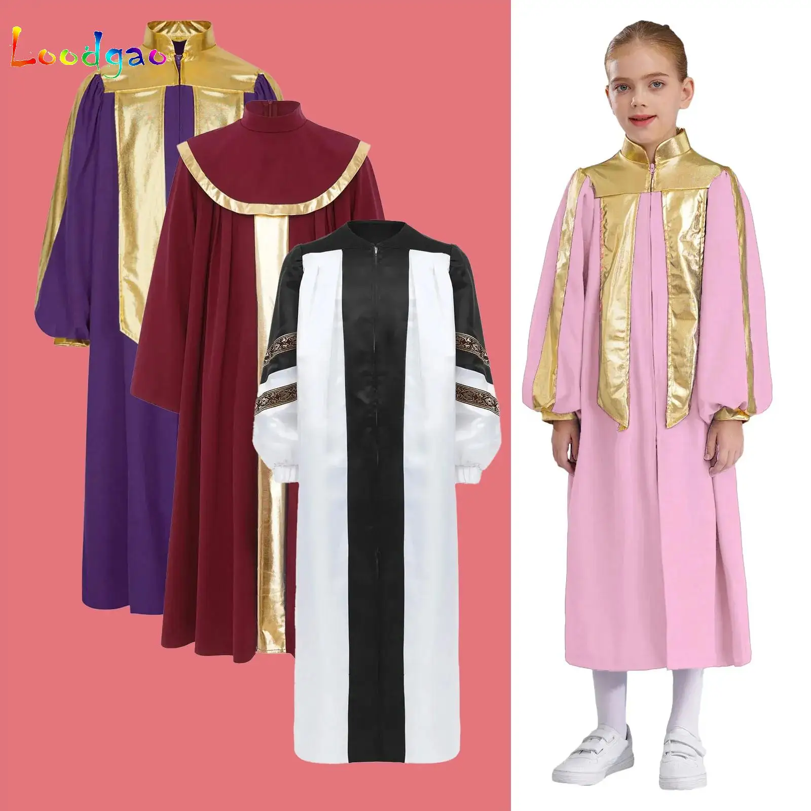 Mädchen Farbblock Chor Kirche Robe Muslim Thobe Abschluss Schule Feiern Zeremonie Langarm Halloween Cosplay Kleid