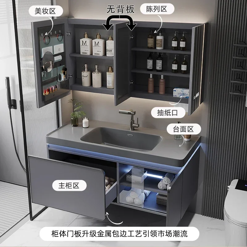 Badezimmer-Schrank aus Eisen, Säulenmöbel unter dem Waschbecken, Holzschrank mit Schubladen, Spiegelschrank für Duschablage