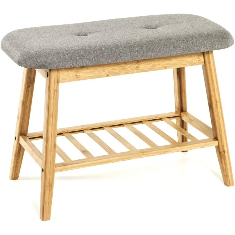 Banco para zapatos bambú, grau, Bambú, tejido textil - Dim. : EIN 60 cm x AL 44 cm x P30 cm, Estilo: Bohemio