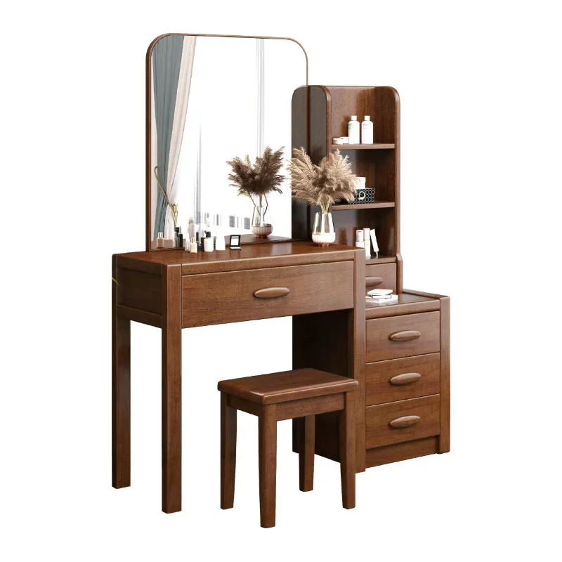 Make-up-Schminktische, Retro-Tische aus Walnussholz, Kosmetikspiegel, Kommoden, einfacher Schminktisch, Aufbewahrungsschubladen, Schrank, Schlafzimmermöbel