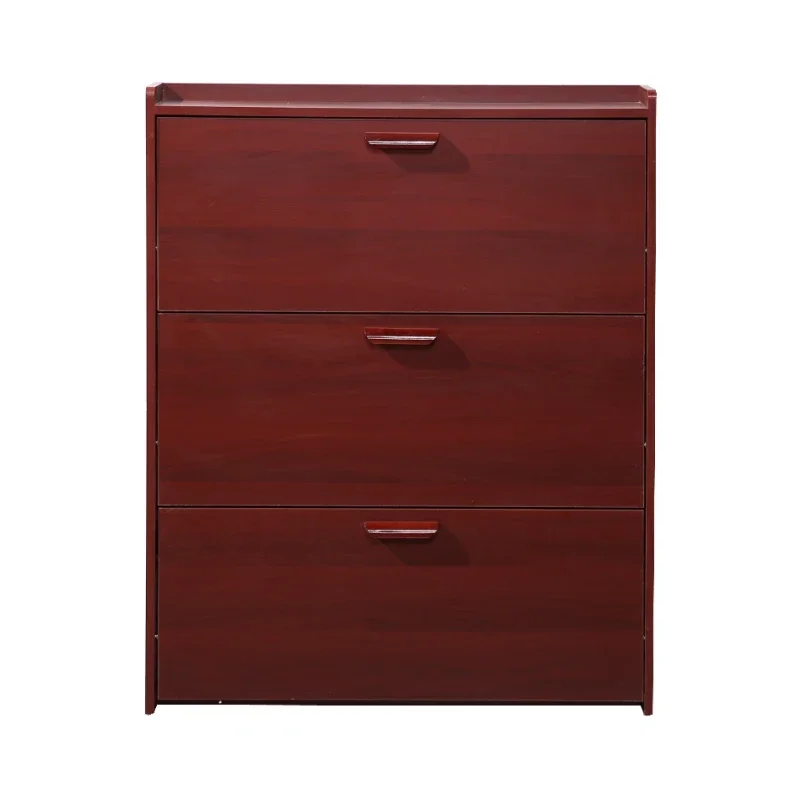 Mahagonifarbener, umweltfreundlicher, ultradünner Flurschranktür-Schuhschrank mit moderner Kippeimer-Montage