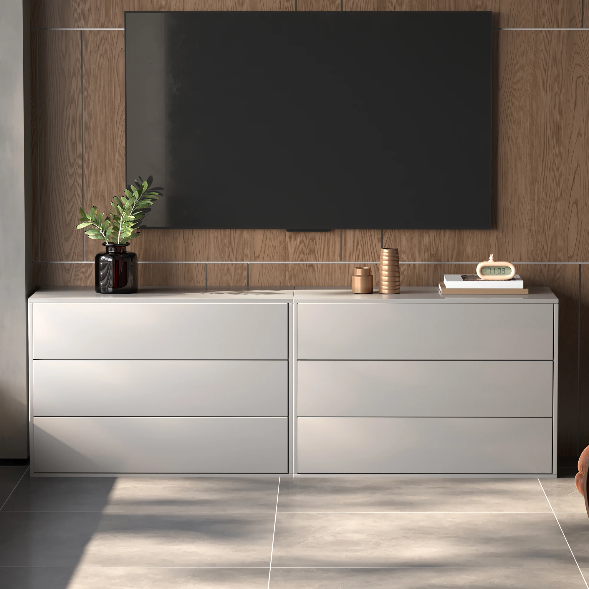 Aufbewahrungsschrank im modernen Stil mit 6 Schubladen, Kommode und Seitenschrank, modulares Design, geeignet für Schlafzimmer, Wohnzimmer und Flur, 160 cm breiter Aufbewahrungsschrank, Weiß (A+A-Modell)