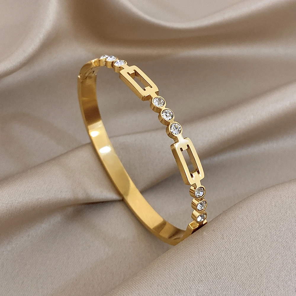 Greatera Quadratische Schnalle Kleines Kubisches Zirkon Gefülltes Manschettenarmband Für Frauen Delikatesse Geometrie Aushöhlen Edelstahl Armreif INS